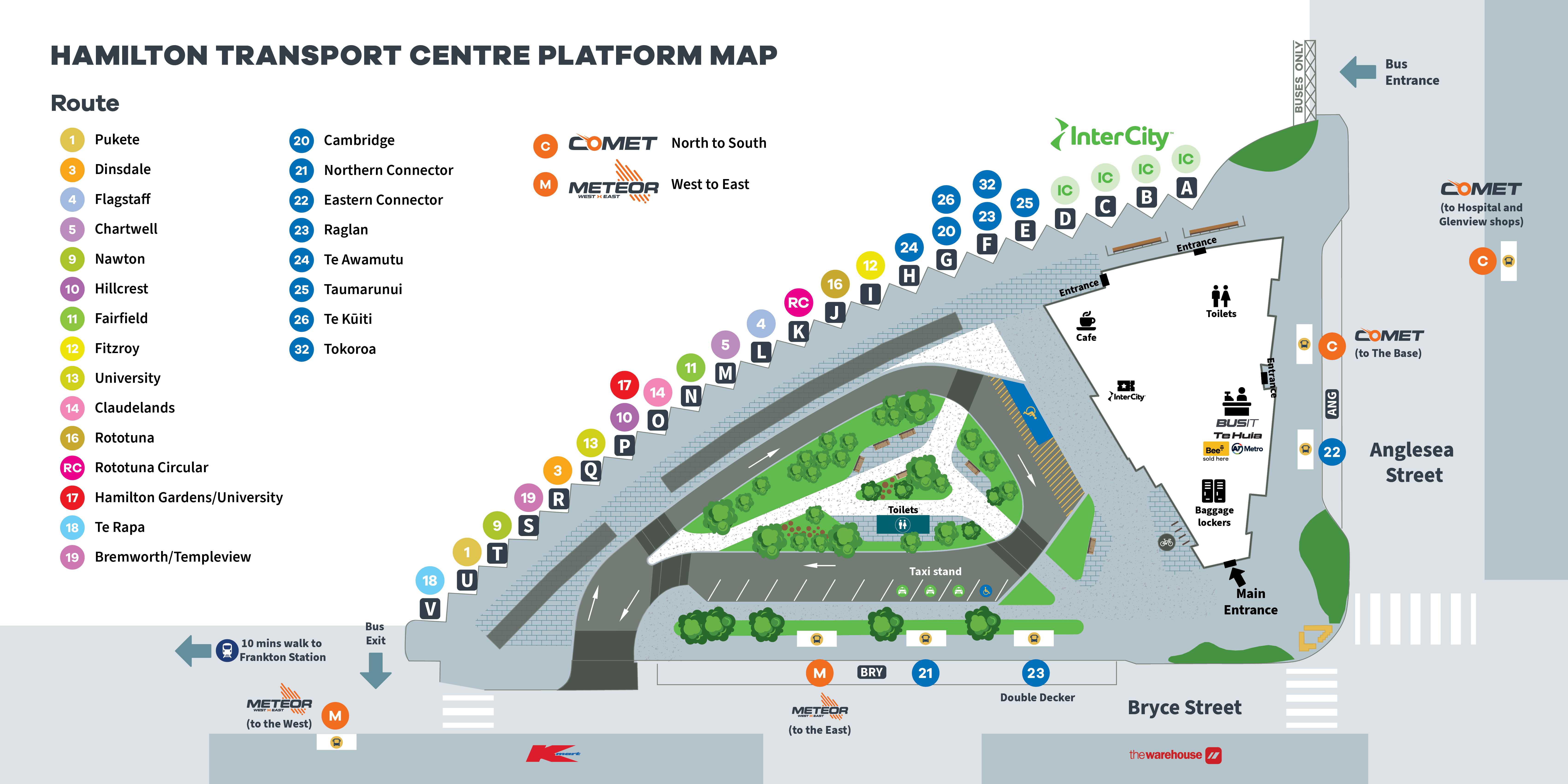 The Transport Centre is situated on the corner of Bryce Street and Anglesea Street, Hamilton.